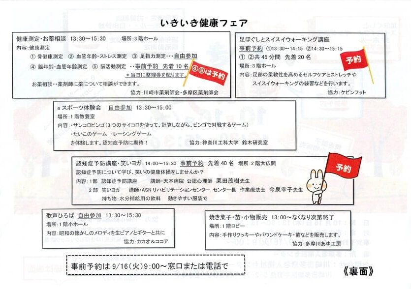 場所 川崎市多摩区老人福祉センター(中野島5-2-30) 日時 10月16日(木)13:30~15:30 内容 健康測定・おくすり相談 NEWS イベント 2025.10.17(金)多摩区薬理事会 20時~ 2025.11.29(土)市民向け講演会「認知症の早期診断と治療・ケアについて」